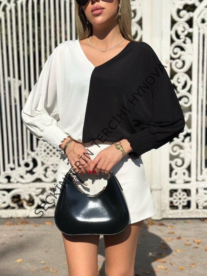 Kadın Uzun Kollu V Yaka Kol Ağzı Gipeli Sandy Bluz