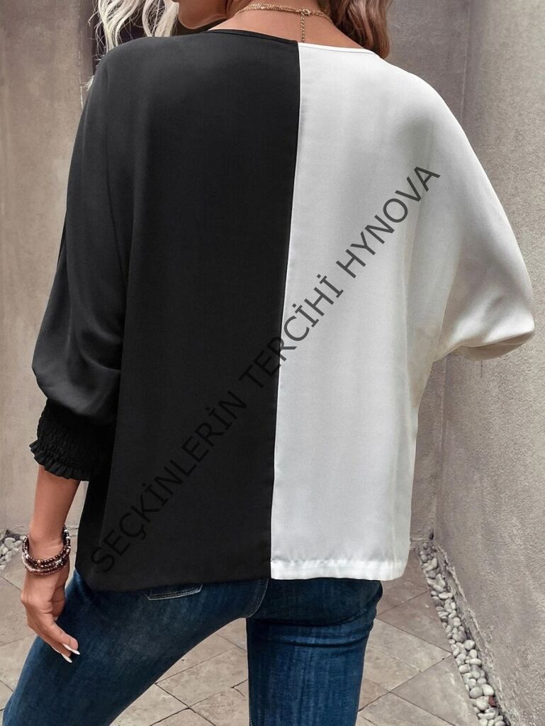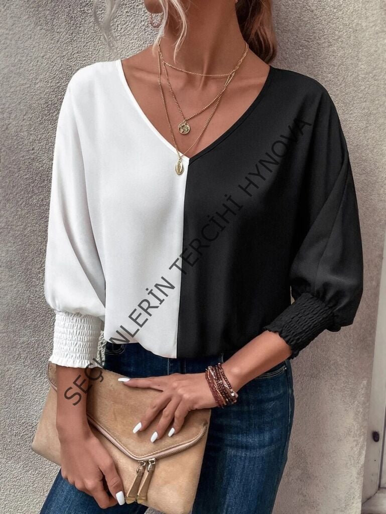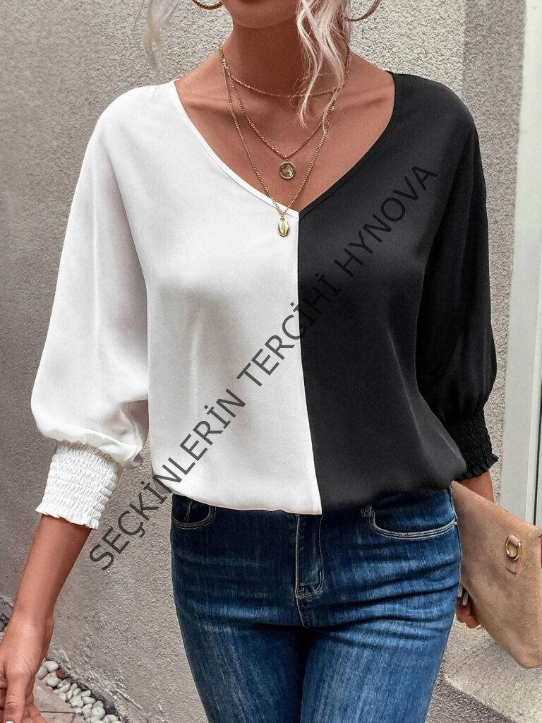 Kadın Uzun Kollu V Yaka Kol Ağzı Gipeli Sandy Bluz