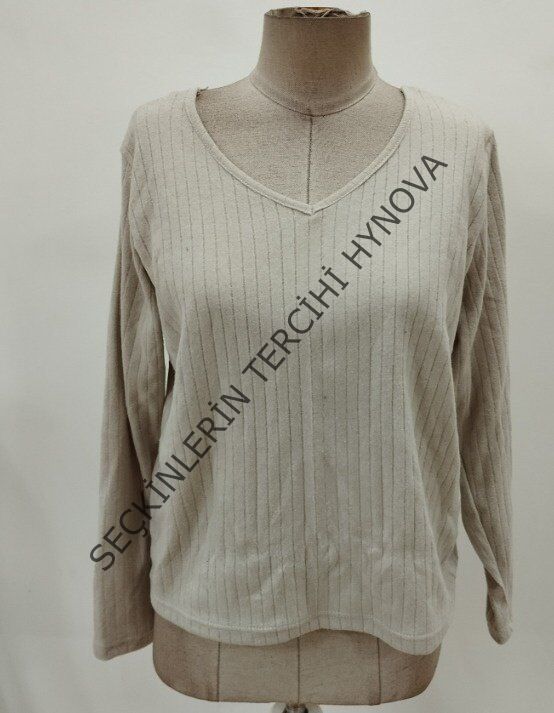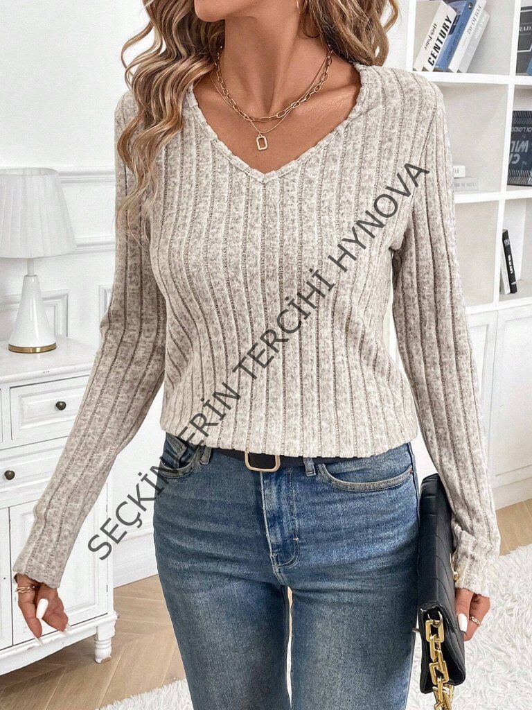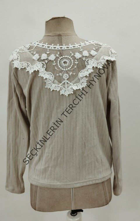 Kadın Uzun Kollu V Yakalı Arkadan Dantel Detaylı şardonlu Kaşkorse Bluz