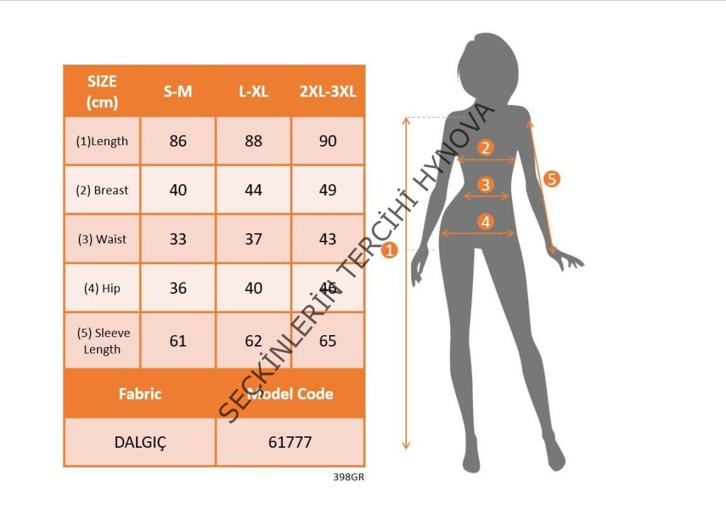 Modelin Ölçüleri: Boy:165, Kg:55, Göğüs:90, Bel:72, Kalça: 100