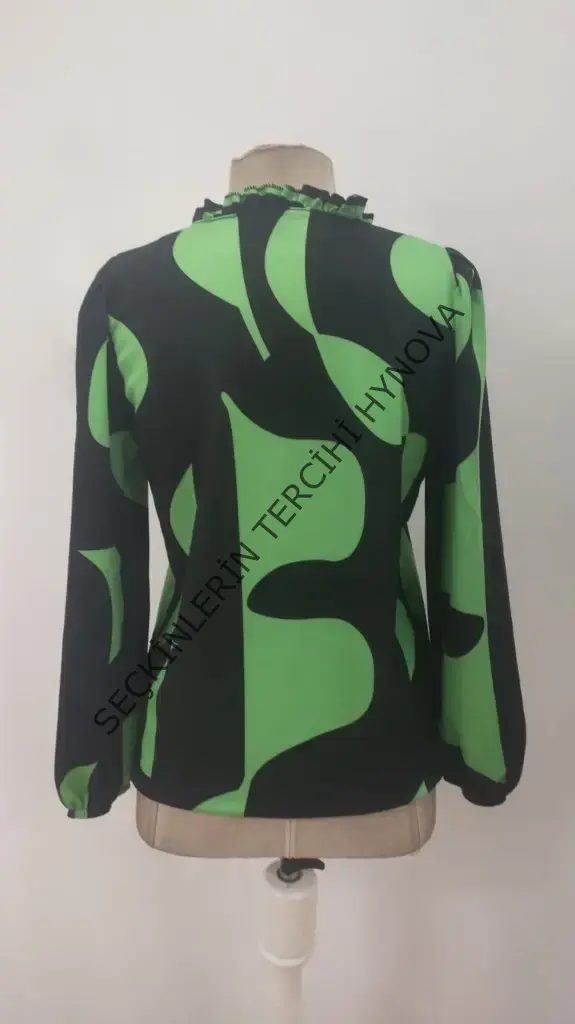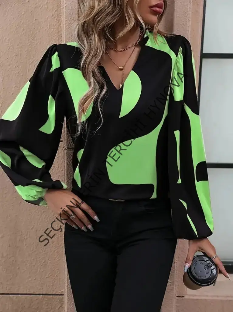 Kadın Uzun Kollu V Yakalı Desenli Modal Bluz