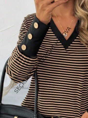 Kadın Uzun Kollu V Yakalı Desenli Süprem Bluz