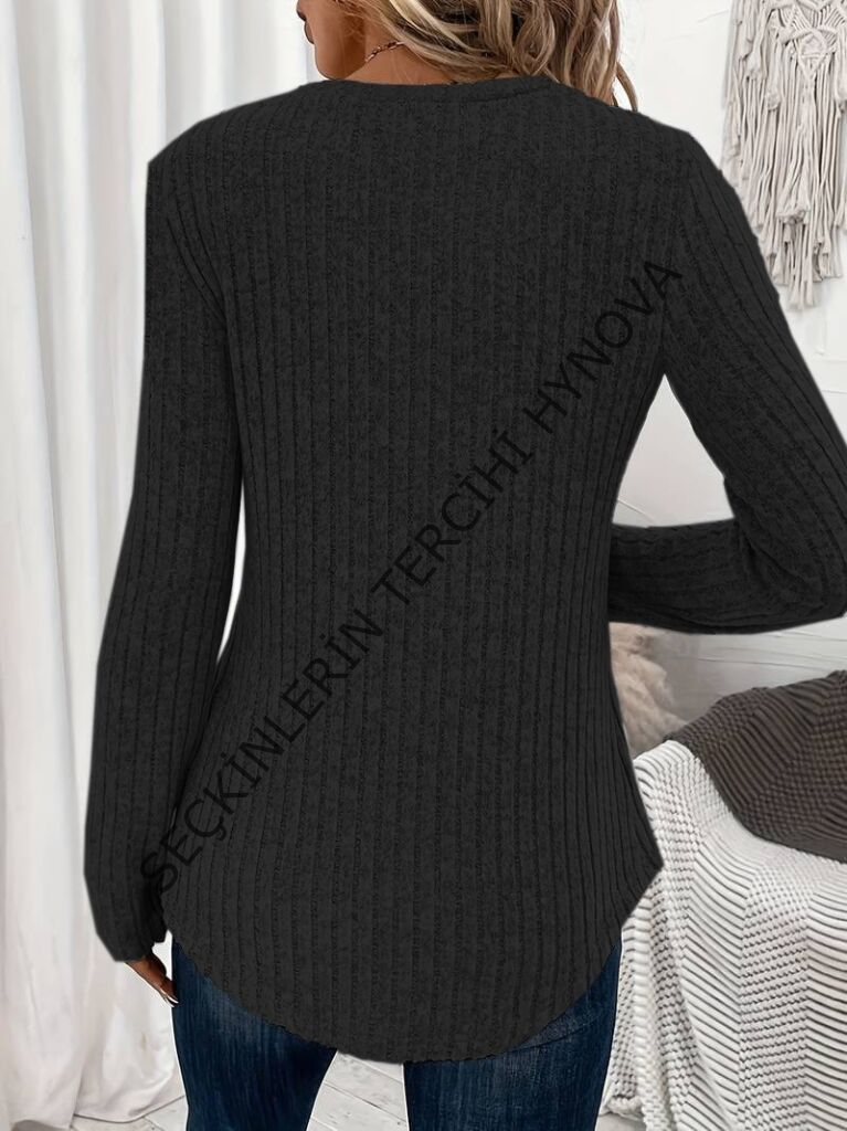 Kadın Uzun Kollu V Yakalı Düğmeli şardonlu Kaşkorse Bluz