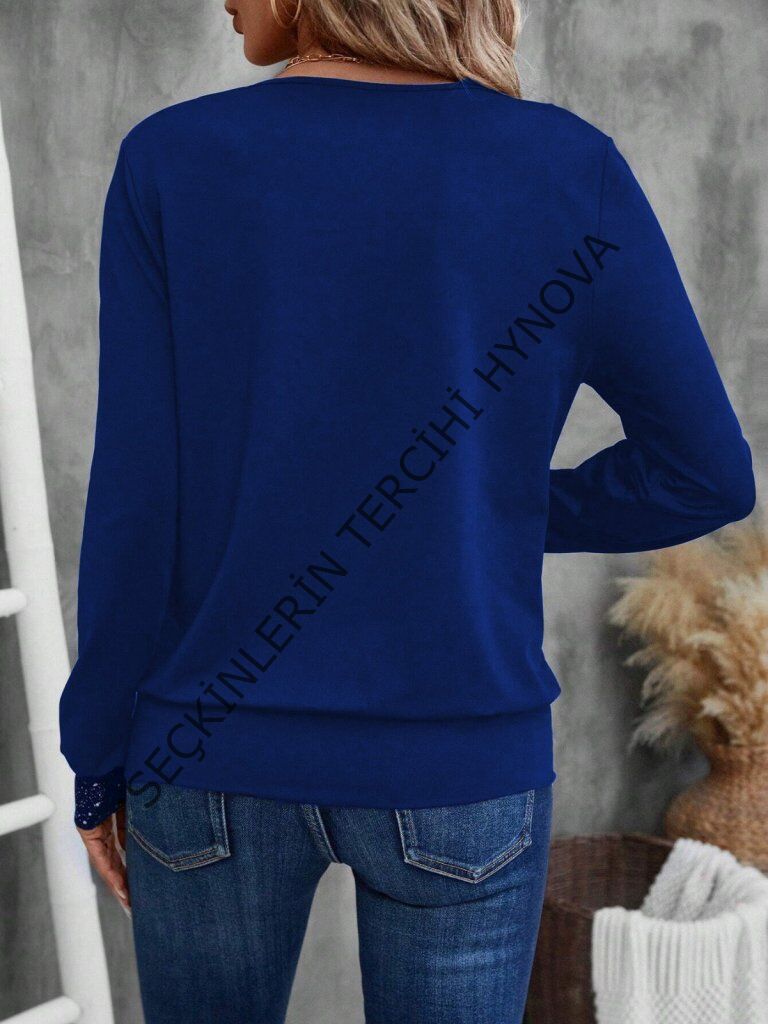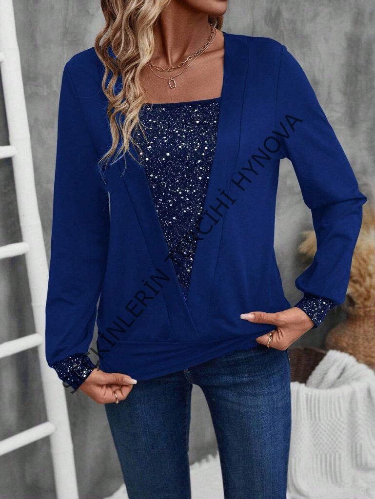Kadın Uzun Kollu V Yakalı Içi Süprem Desenli Dışı Viskon Bluz