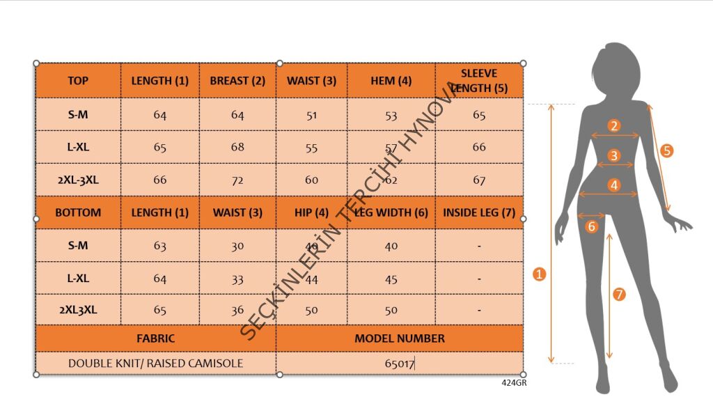 Modelin Ölçüleri: Boy:165, Kg:55, Göğüs:90, Bel:72, Kalça: 100