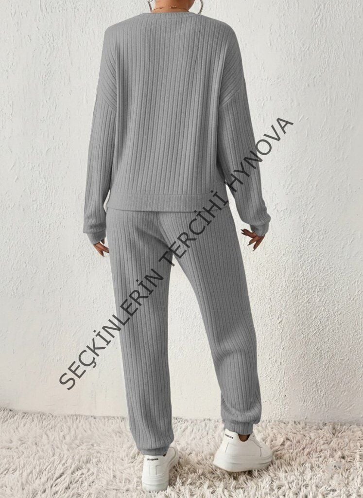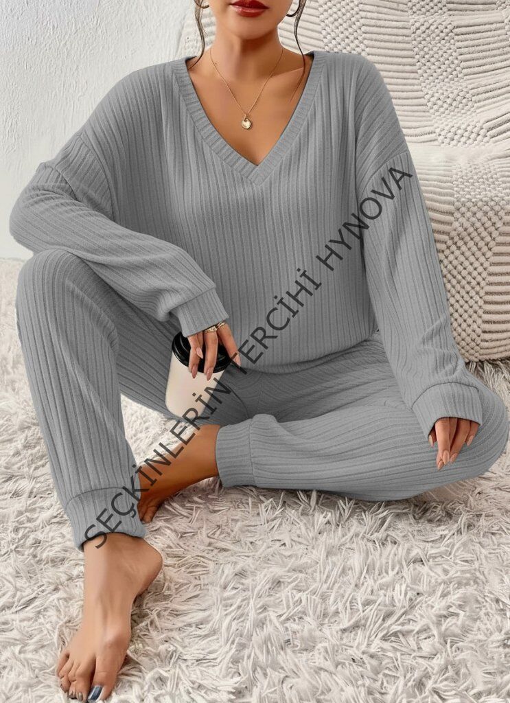 Kadın Uzun Kollu V Yakalı Kaşkorse Bluz Ve Pantolon Ikili Takım
