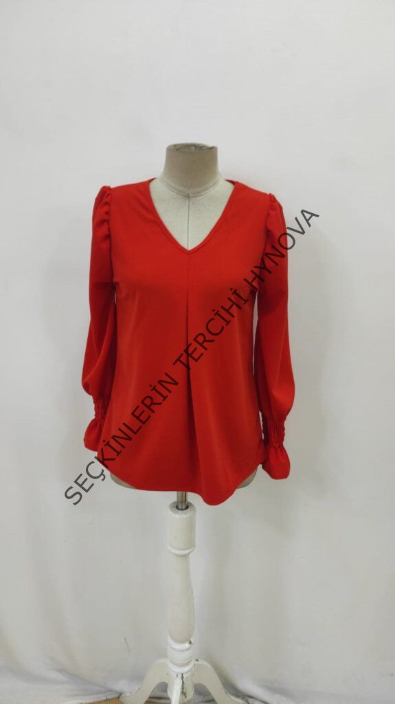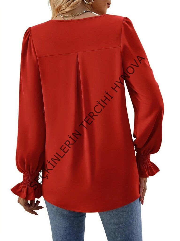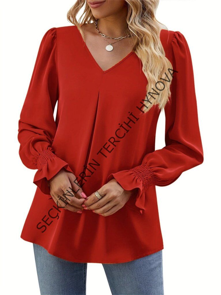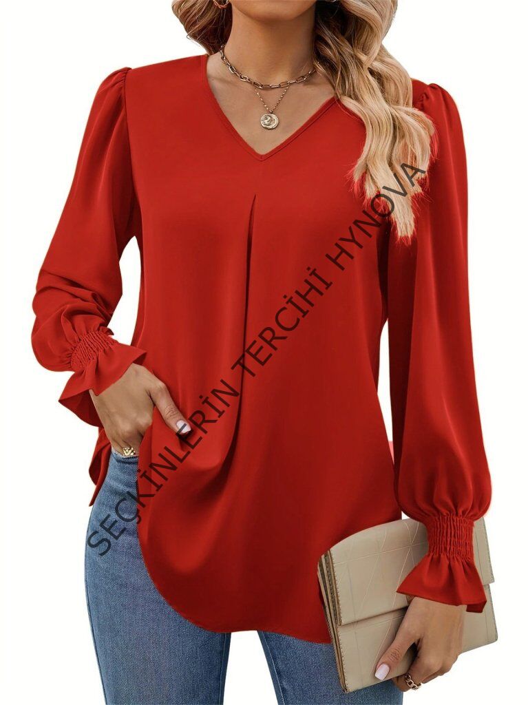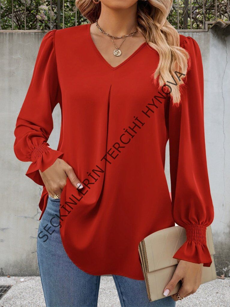 Kadın Uzun Kollu V Yakalı Salaş Ithal Krep Bluz