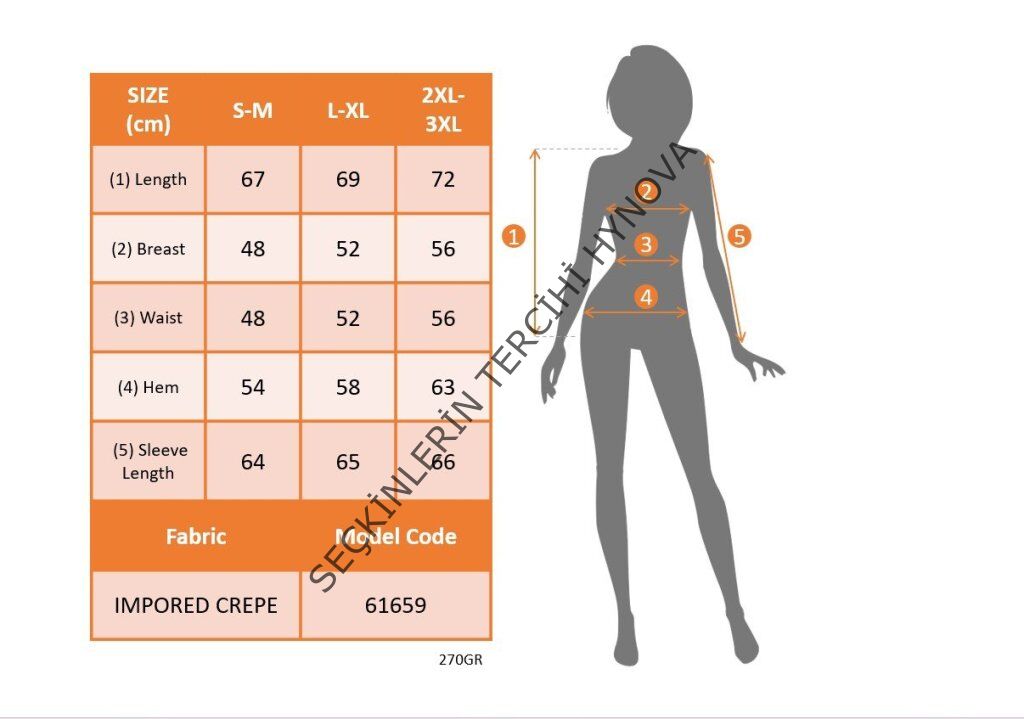Modelin Ölçüleri: Boy:165, Kg:55, Göğüs:90, Bel:72, Kalça: 100