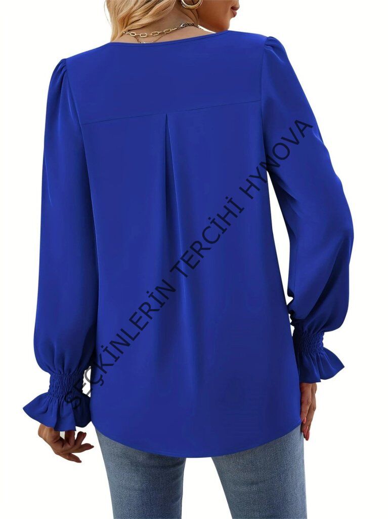 Kadın Uzun Kollu V Yakalı Salaş Ithal Krep Bluz