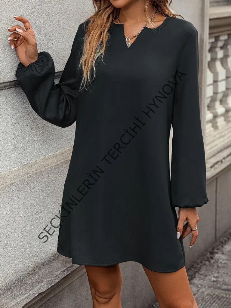 Kadın Uzun Kollu V Yakalı Salaş Ithal Krep Elbise