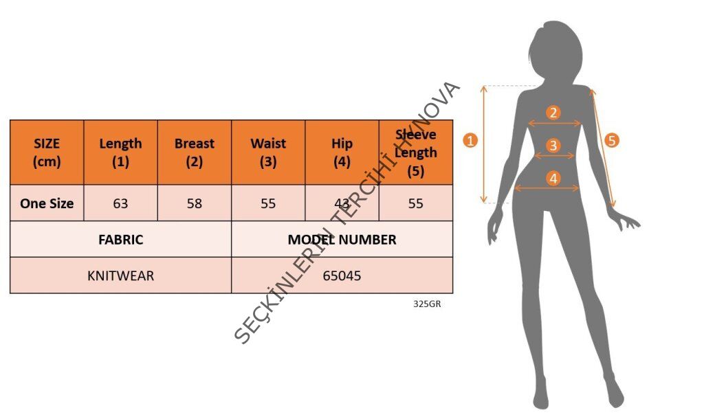 Modelin Ölçüleri: Boy:165, Kg:55, Göğüs:90, Bel:72, Kalça: 100