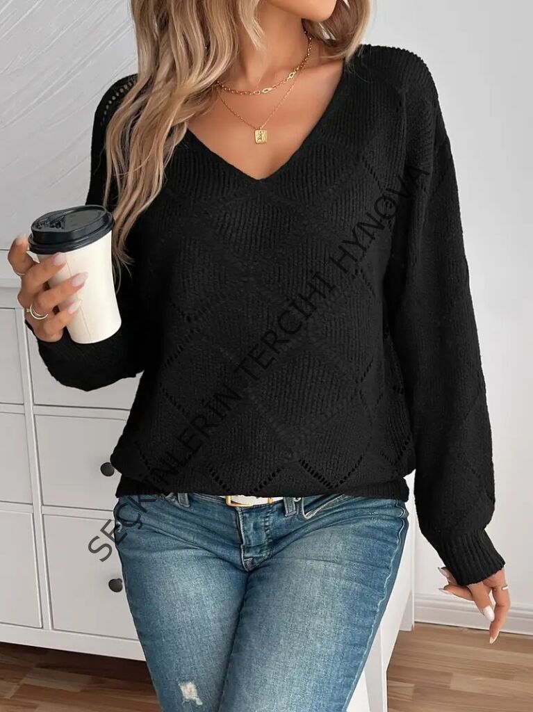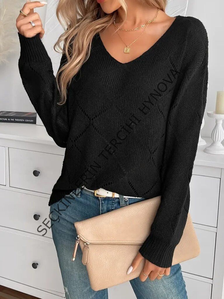 Kadın Uzun Kollu V Yakalı Triko Bluz