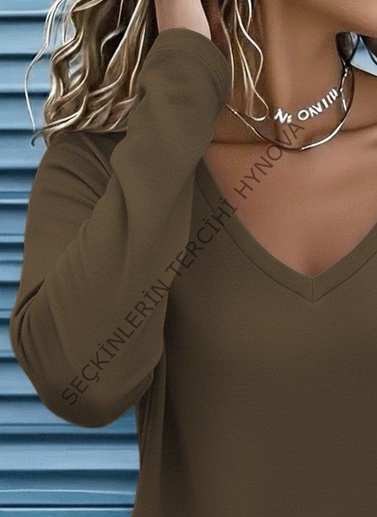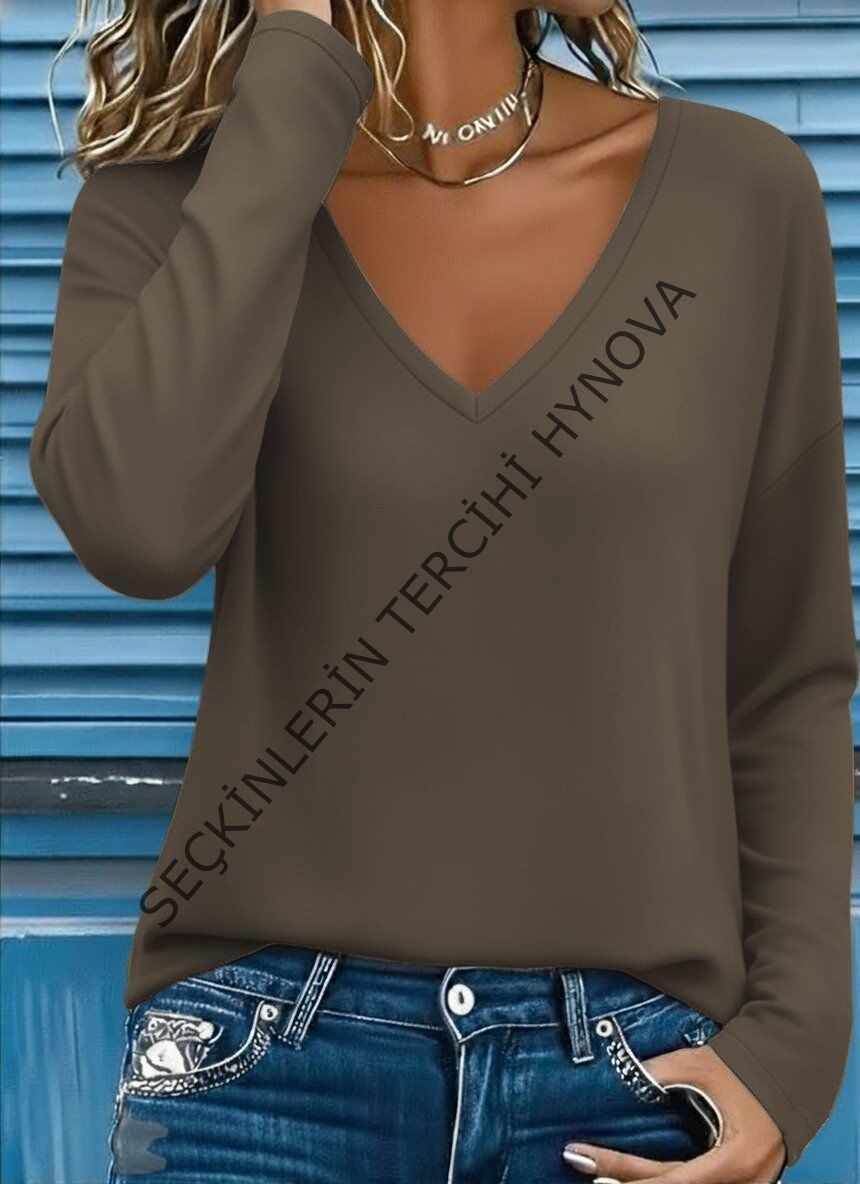 Kadın Uzun Kollu V Yakalı Viskon Iki Iplik Bluz