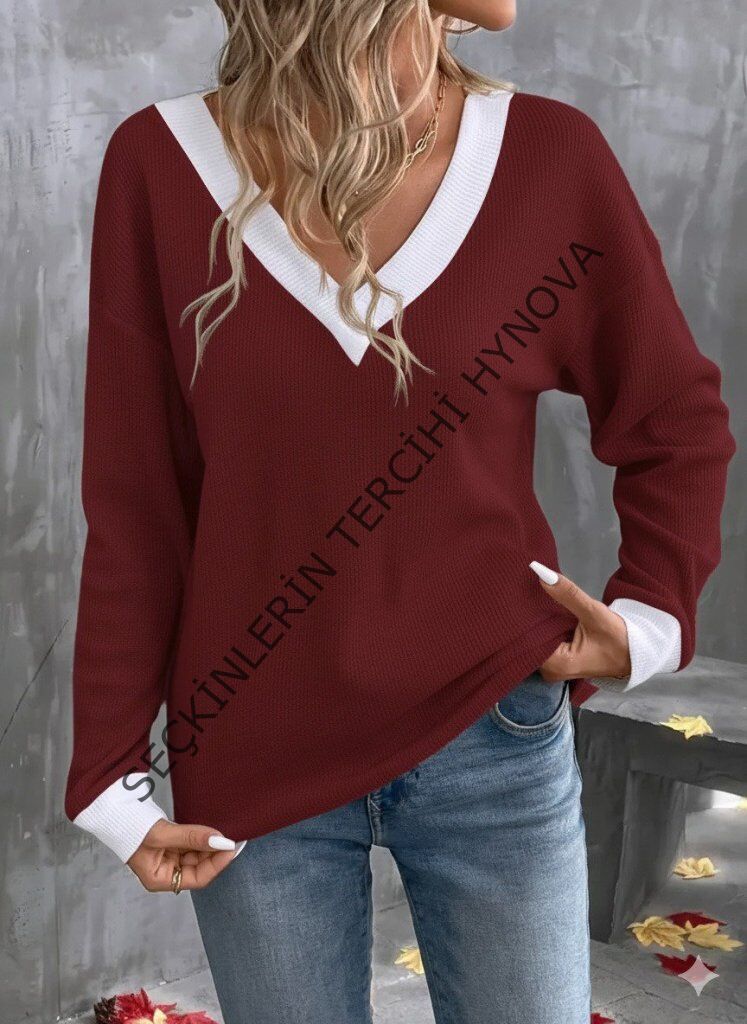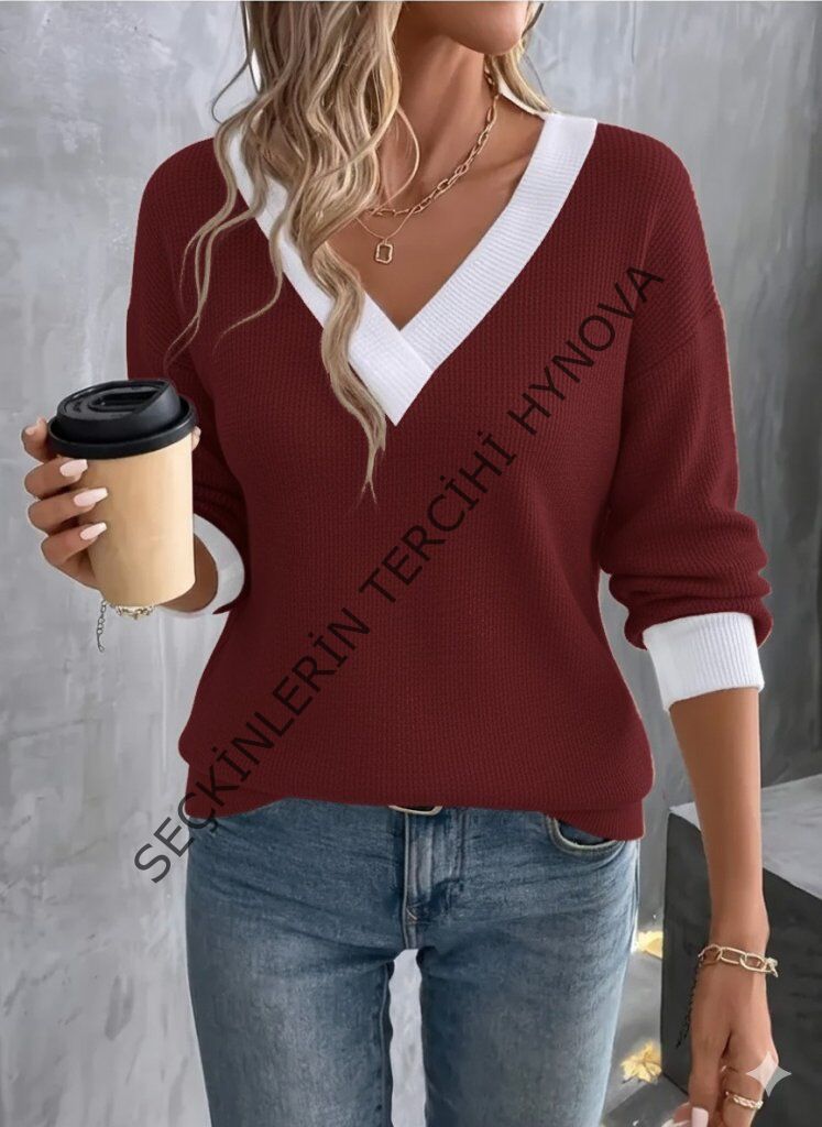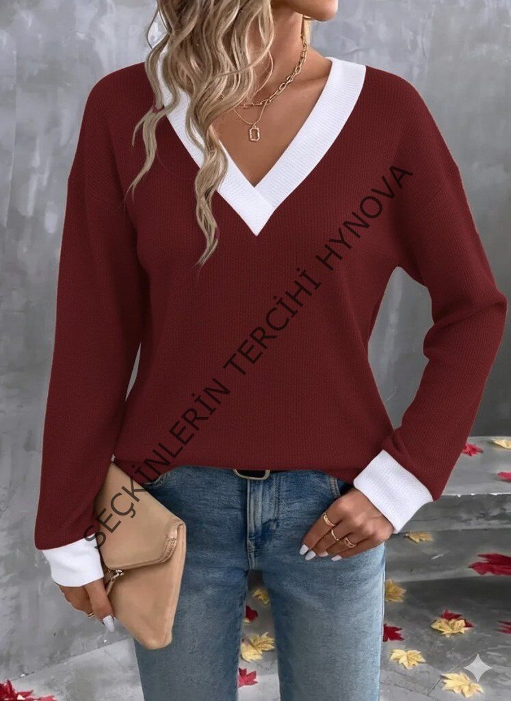 Kadın Uzun Kollu V Yakalı Waffle Bluz