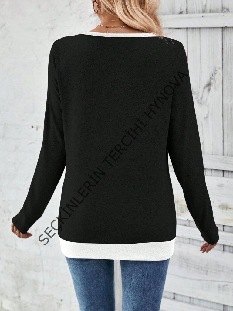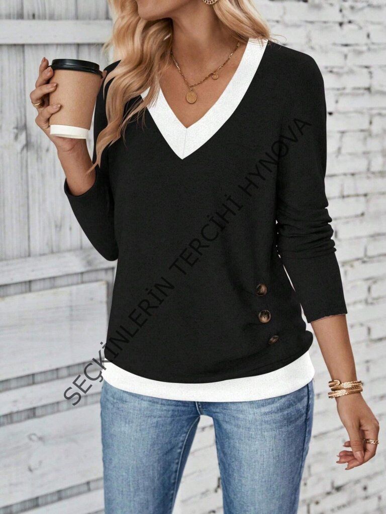 Kadın Uzun Kollu V Yakalı Yandan Düğmeli Yün Viskon Bluz