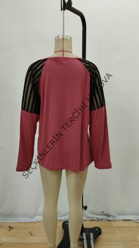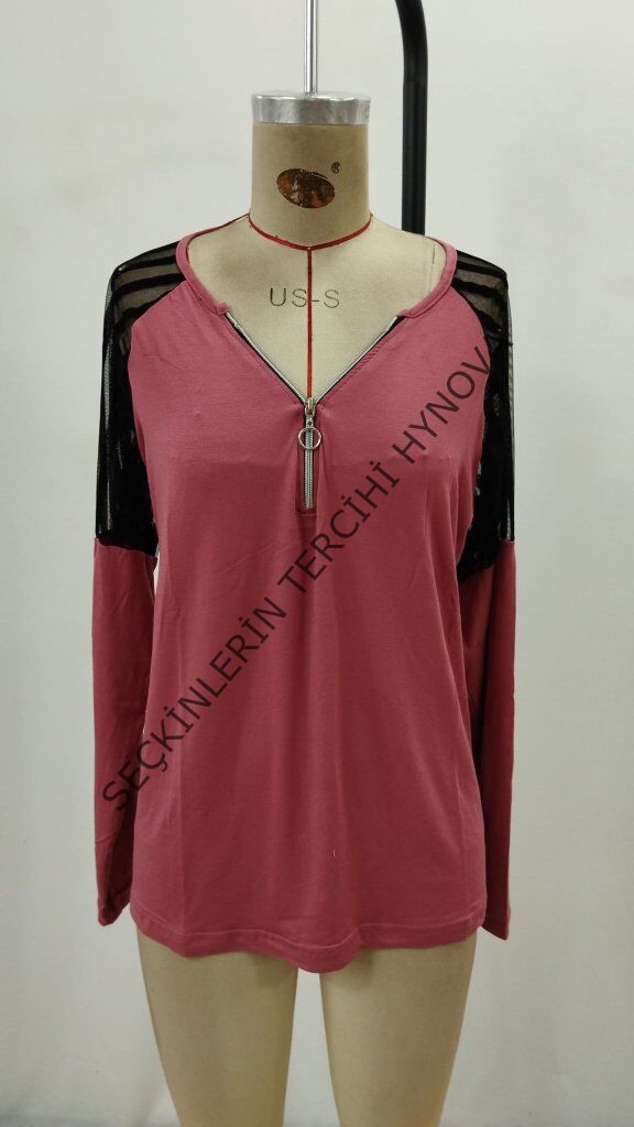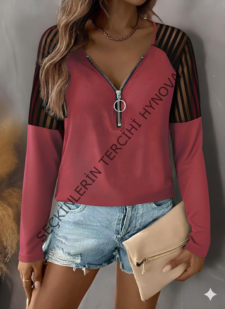 Kadın Uzun Kollu Yakadan Fermuarlı Viskon Bluz