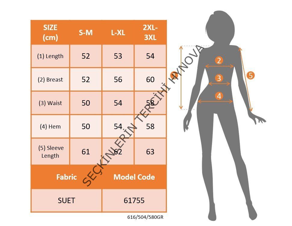 Modelin Ölçüleri: Boy:165, Kg:55, Göğüs:90, Bel:72, Kalça: 100