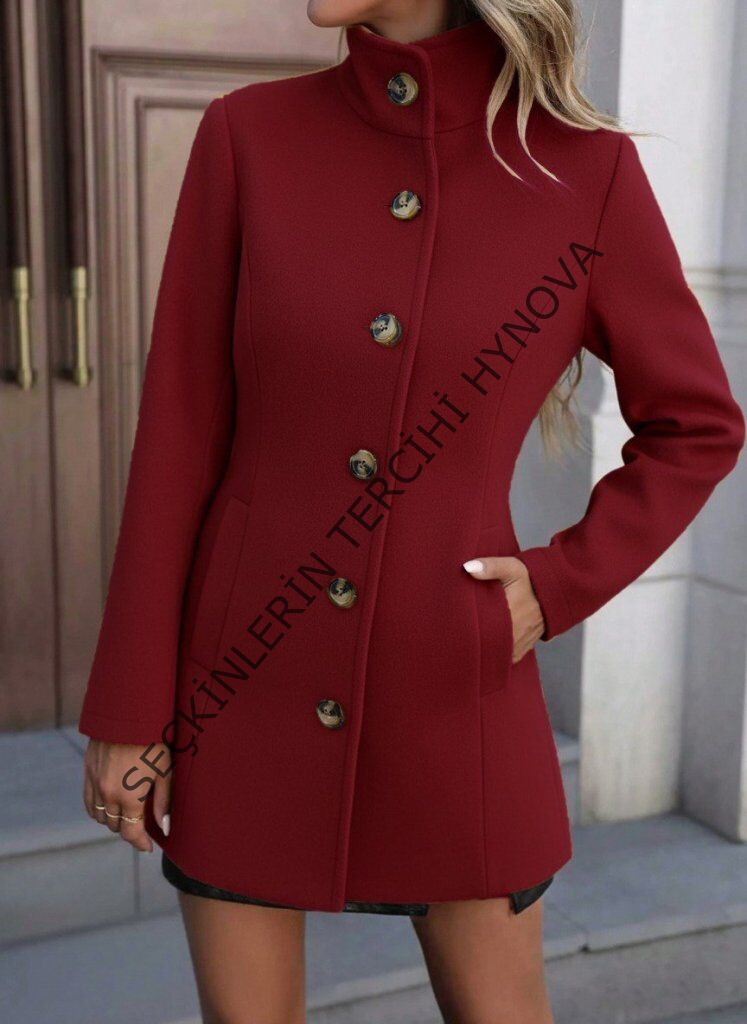 Kadın Uzun Kollu Yakalı önden Düğmeli Astarsız Ithal Kaşe Kaban