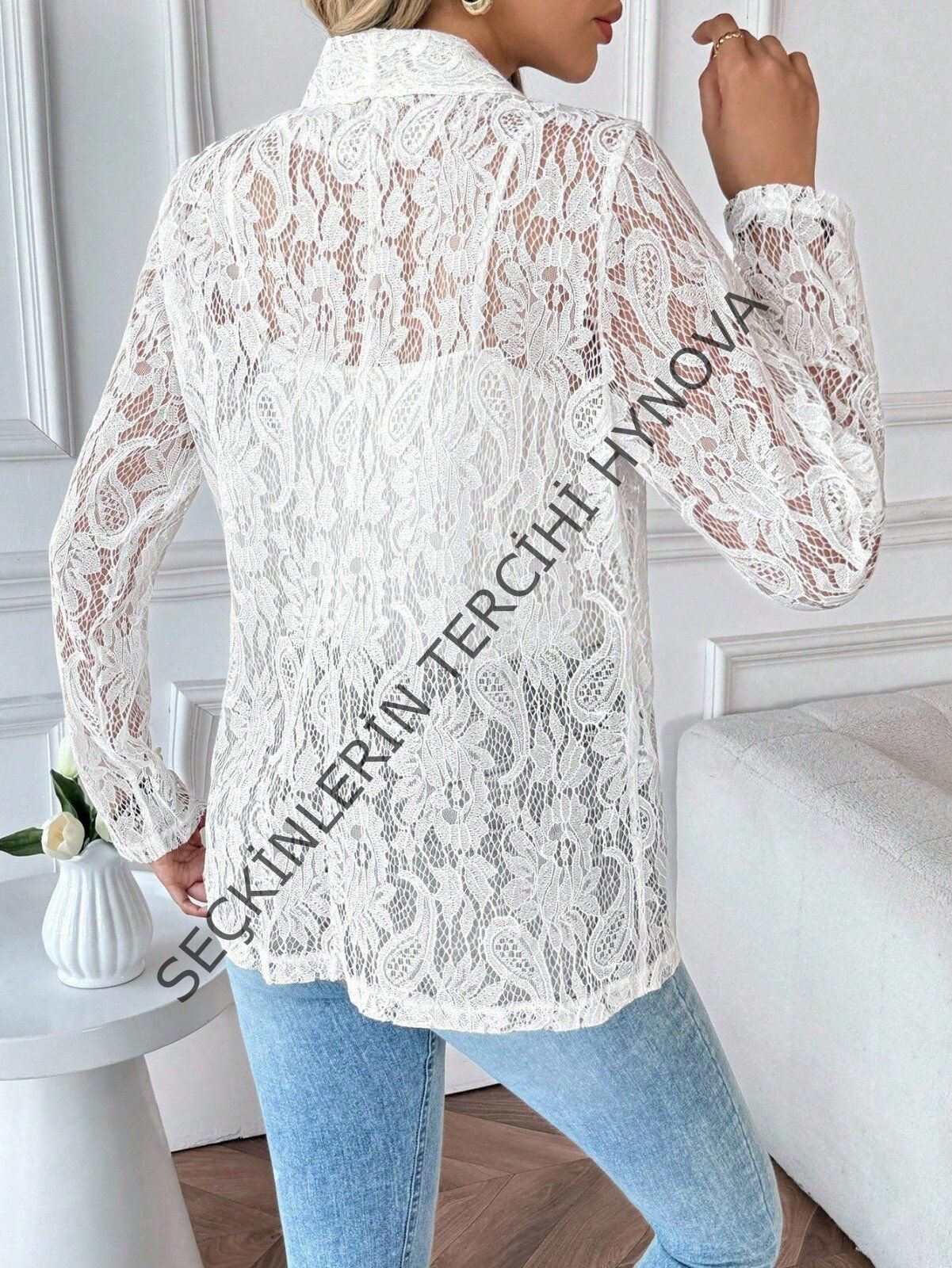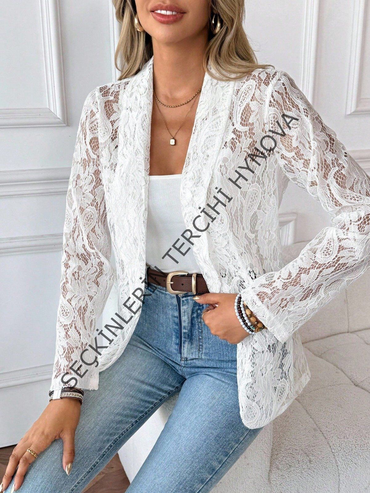 Kadın Uzun Kollu Yakalı önü Açık Dantelli Ceket