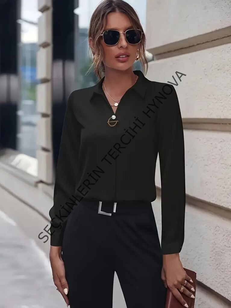 Kadın Uzun Kollu Yakalı Trikoton Gömlek