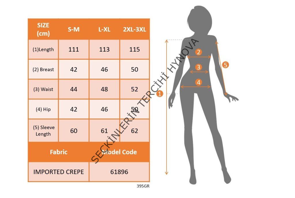 Modelin Ölçüleri: Boy:165, Kg:55, Göğüs:90, Bel:72, Kalça: 100