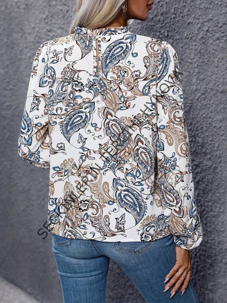 Kadın Uzun Kollu Yarı Balıkçı Yaka Desenli Süprem Bluz