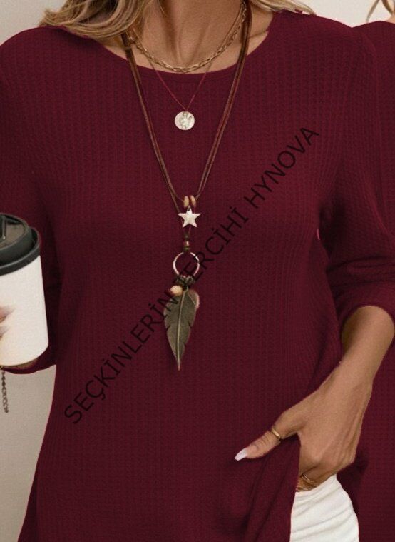 Kadın Uzun Kollu Yuvarlak Yaka Arkadan Düğmeli Waffle Bluz