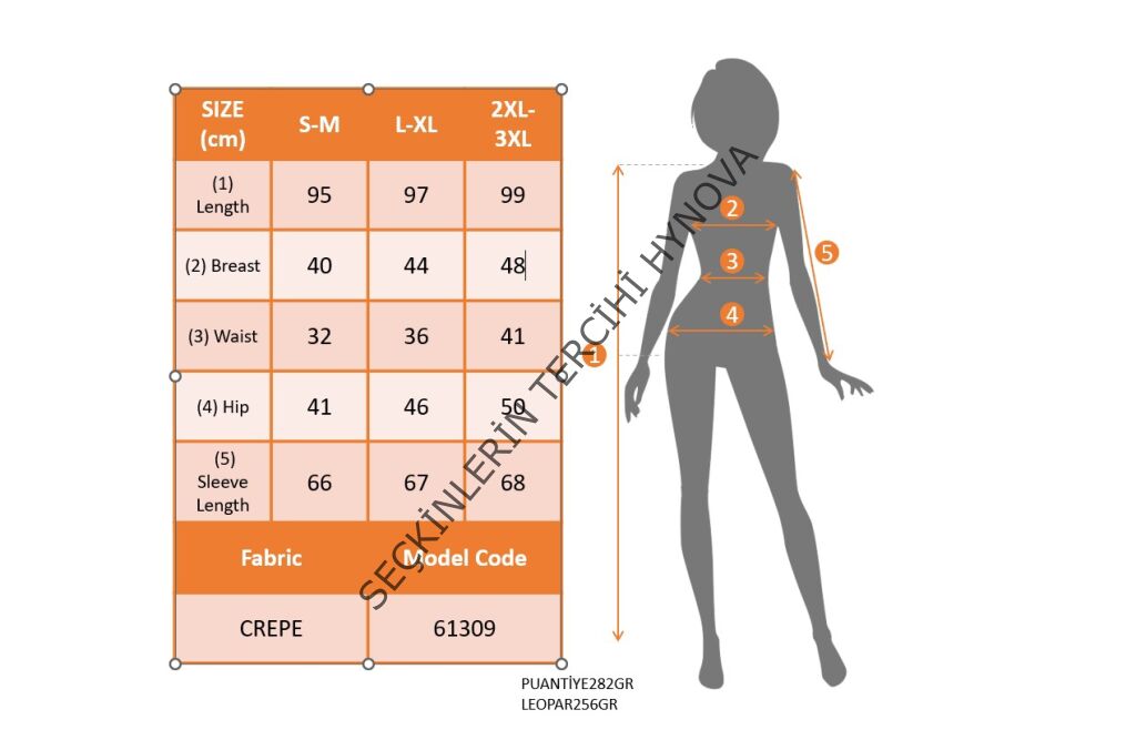 Modelin Ölçüleri: Boy:165, Kg:55, Göğüs:90, Bel:72, Kalça: 100