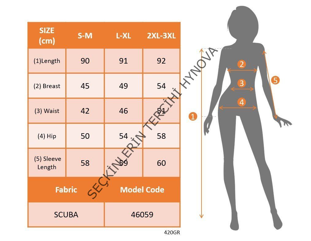 Modelin Ölçüleri: Boy:165, Kg:55, Göğüs:90, Bel:72, Kalça: 100