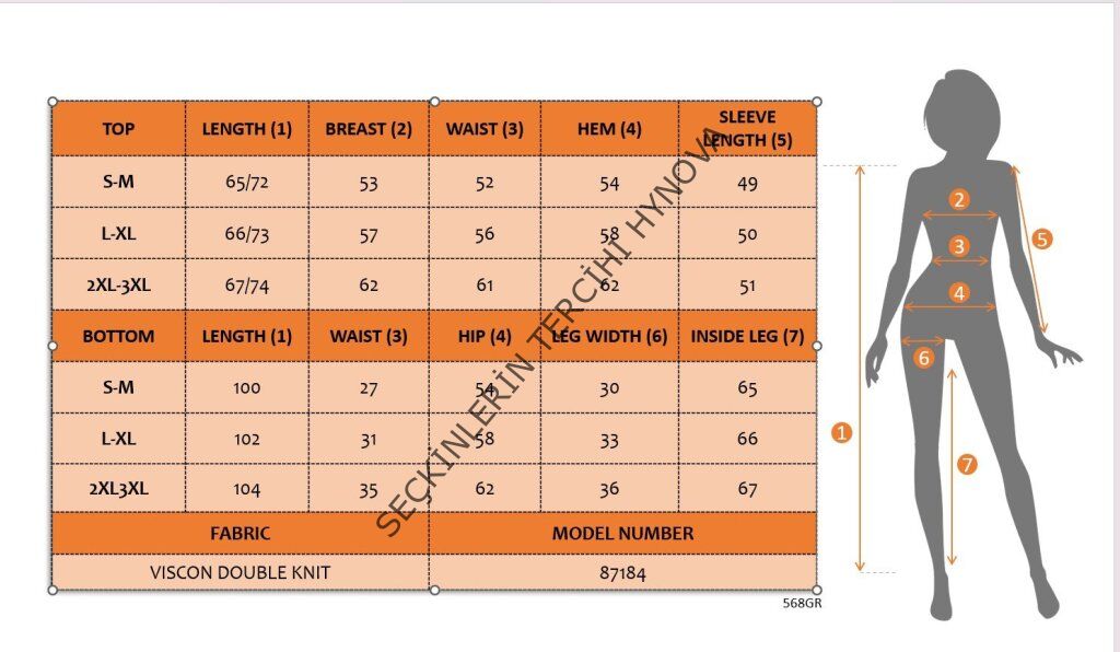 Modelin Ölçüleri: Boy:165, Kg:55, Göğüs:90, Bel:72, Kalça: 100