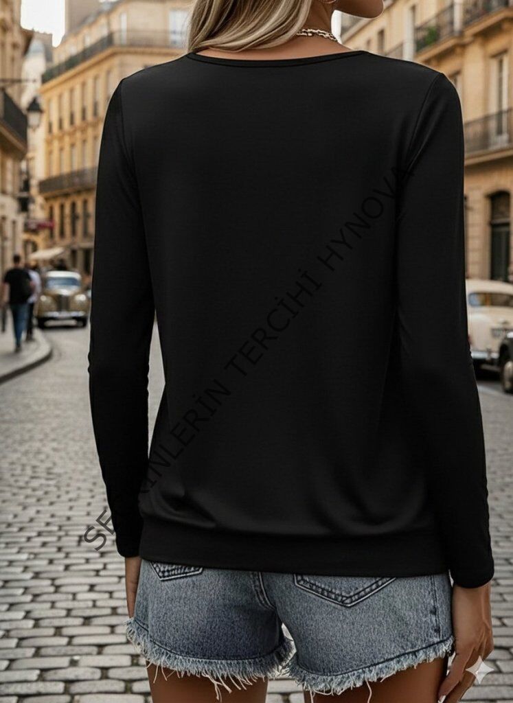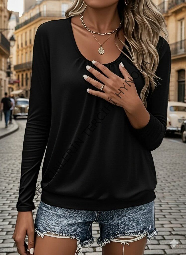 Kadın Uzun Kollu Yuvarlak Yakalı Viskon Bluz 178611