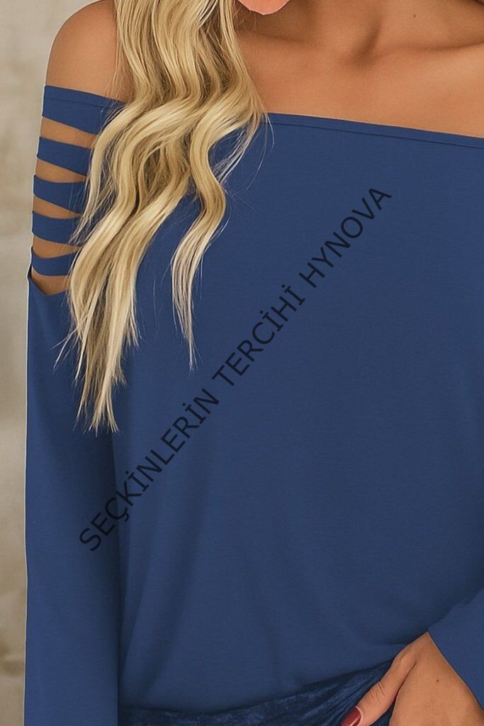 Kadın Uzun Lazer Kesik Detaylı Askılı Viskon Iki Iplik Bluz