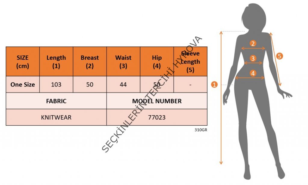 Modelin Ölçüleri: Boy:165, Kg:55, Göğüs:90, Bel:72, Kalça: 100