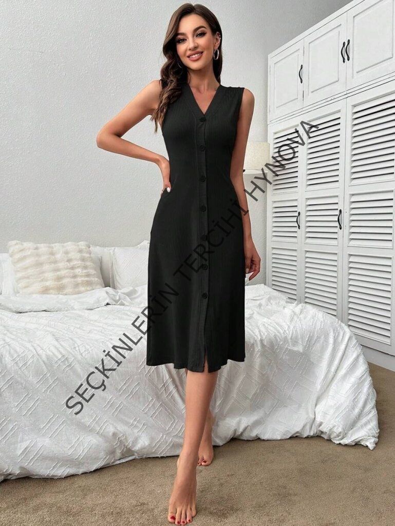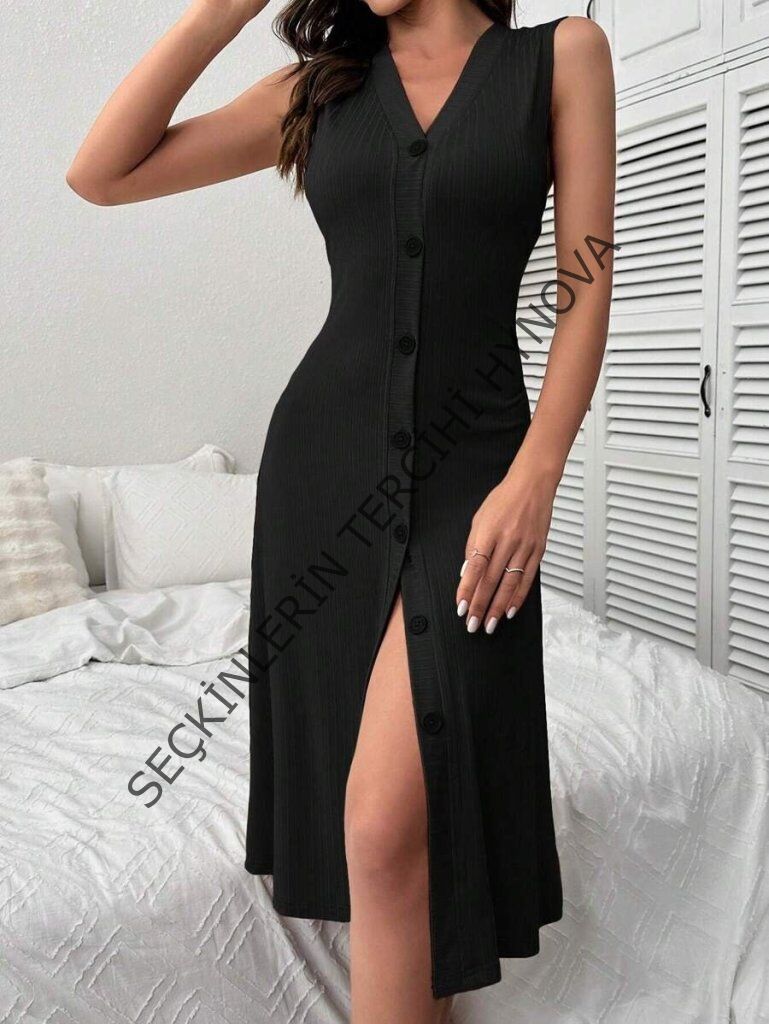 Kadın V Yakalı önden Düğmeli Kaşkorse Elbise