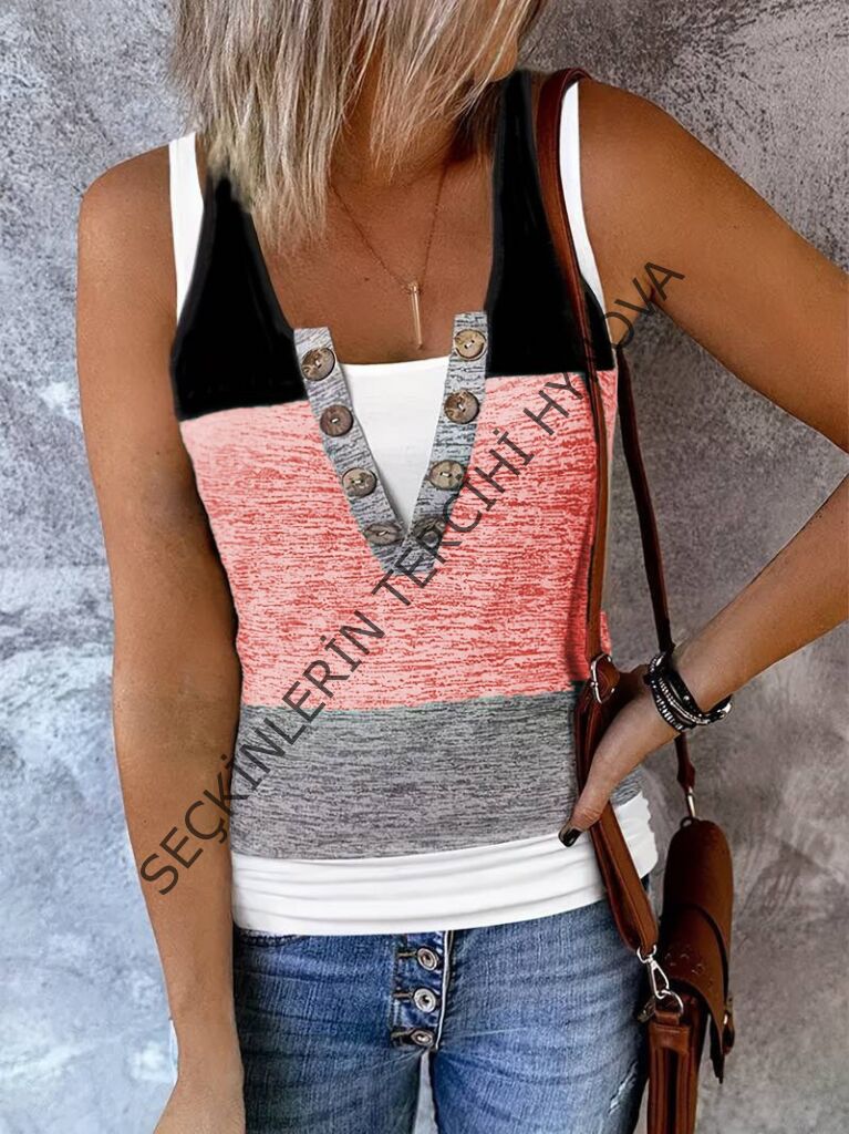 Kadın V Yakalı önden Düğmeli Viskon Bluz