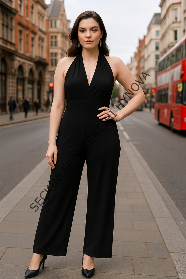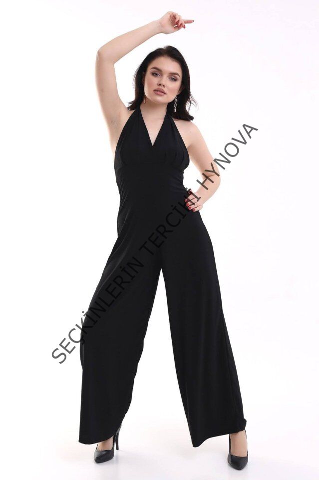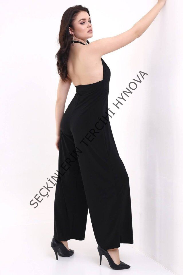 Kadın V YakaSırt Dekolteli Geniş Paça Sandy Kumaş Fırsat Ürün Tulum