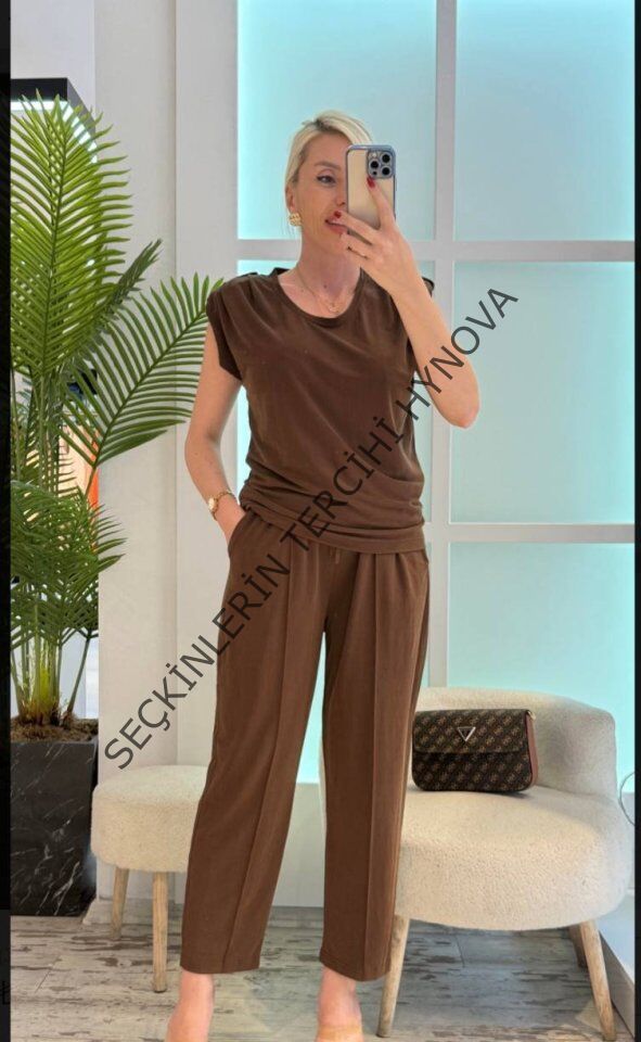 Kadın Vatkalı Düşük Kol Rahat Kesim İkili Takım