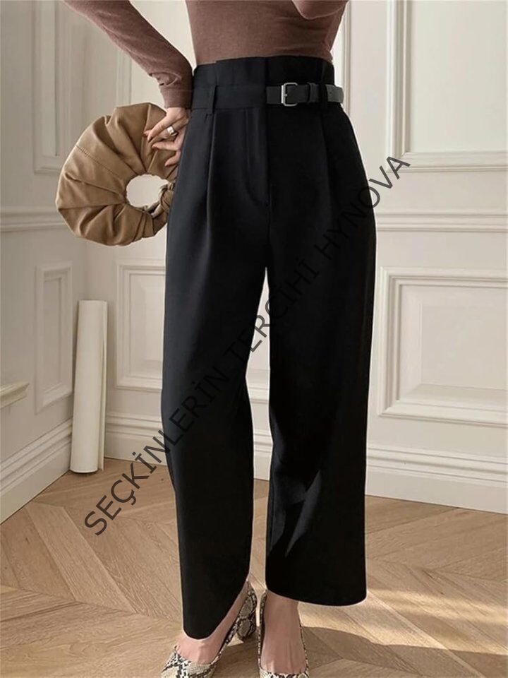 Kadın Yan Deri Kemerli şık Havuç Pantolun