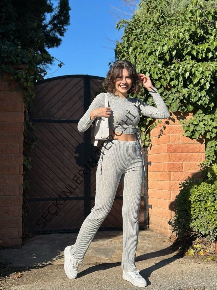 Kadın Yandan Bağlamalı Geniş Paçalı Fitil Kaşkorse İkili Takım