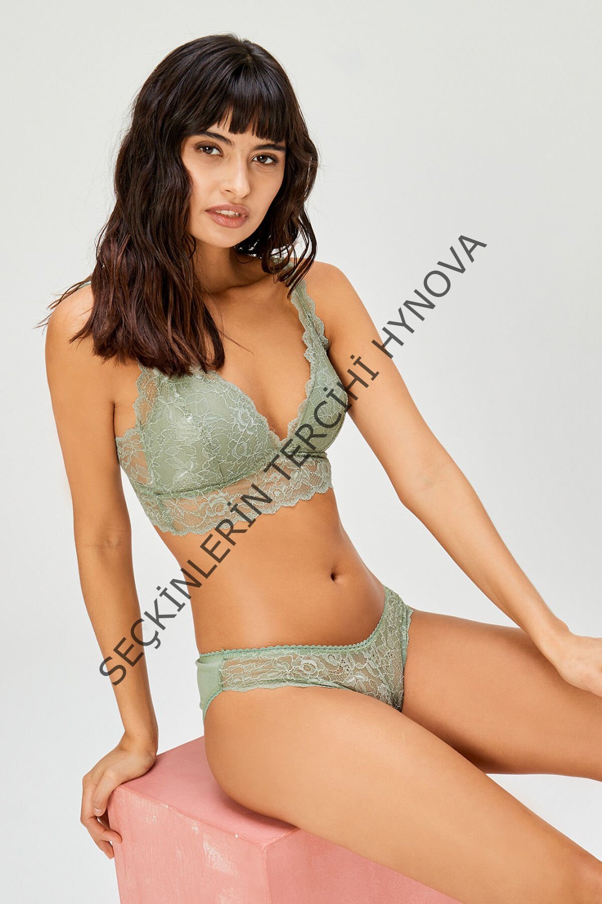 Kadın Yeşil Dantelli Büstiyer Sütyen Külot Takımı – Modern, Konforlu ve Günlük Kombinlere Uygun