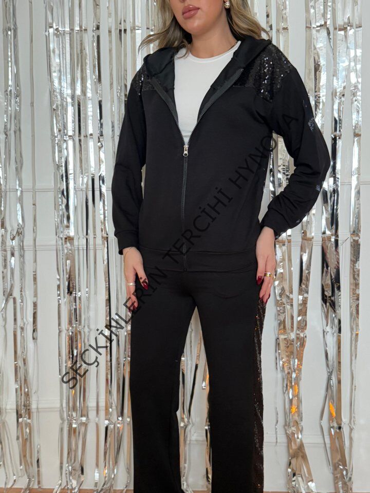 Kadın Yılbaşı özel Iki Iplik Kumaş Pul Ve Fermuar Detaylı Ikili Takım