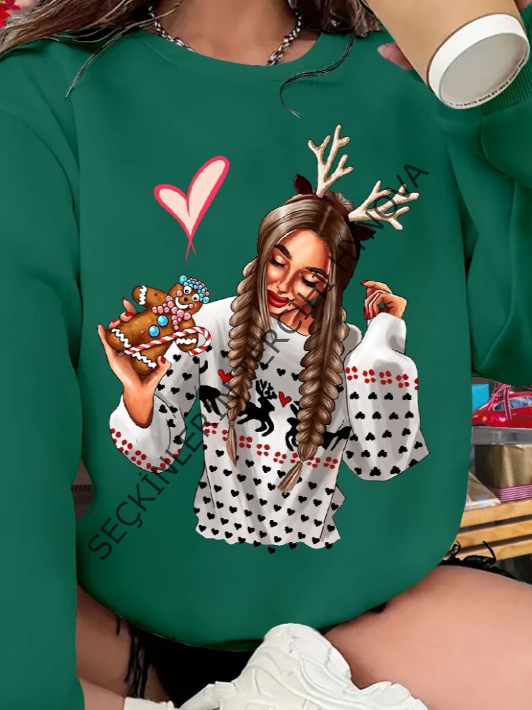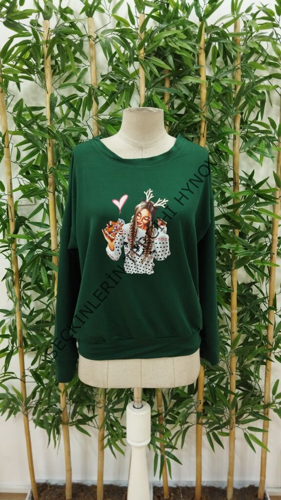 Kadın Yılbaşı Özel Uzun Kollu Bisiklet Yaka Desenli Viskon Iki Iplik Bluz