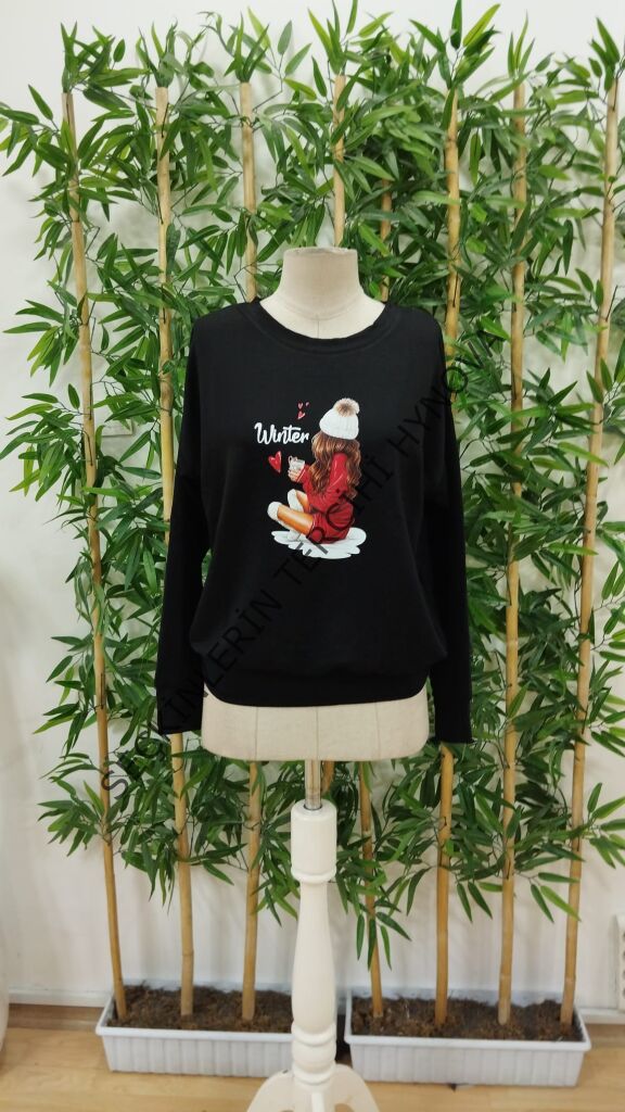 Kadın Yılbaşı Özel Uzun Kollu Bisiklet Yaka Desenli Viskon Iki Iplik Bluz