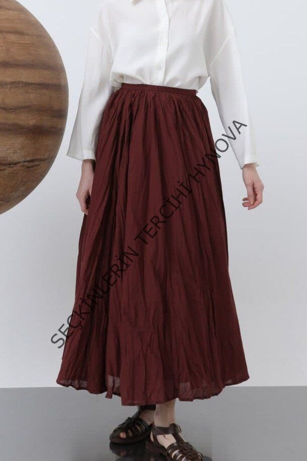 Kadın Yüksek Bel Arkadan Fermuarlı Kırışık Geniş Kesimli Vural Etek