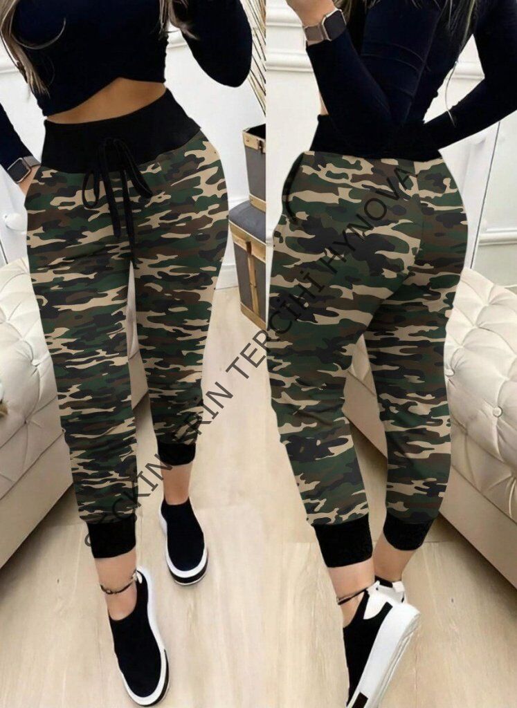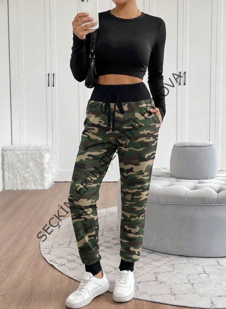 Kadın Yüksek Bel Bağcıklı Desenli Iki Iplik Pantolon