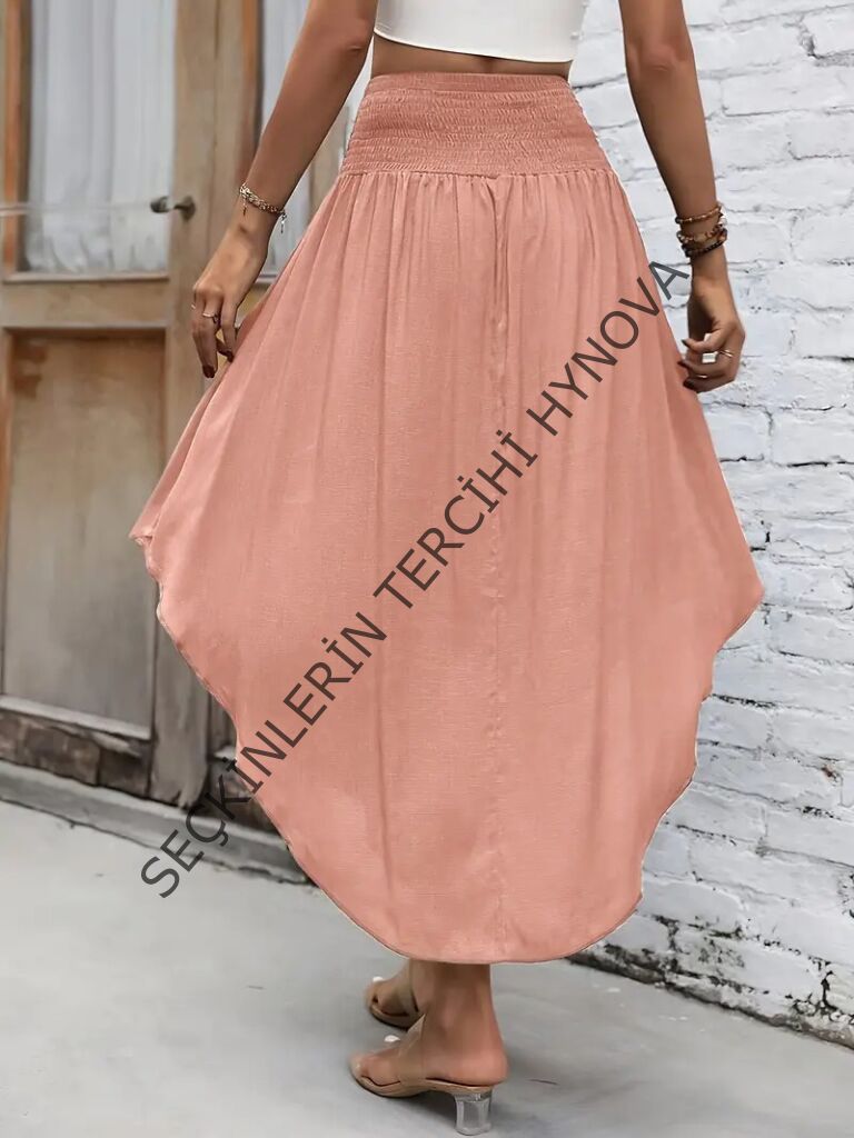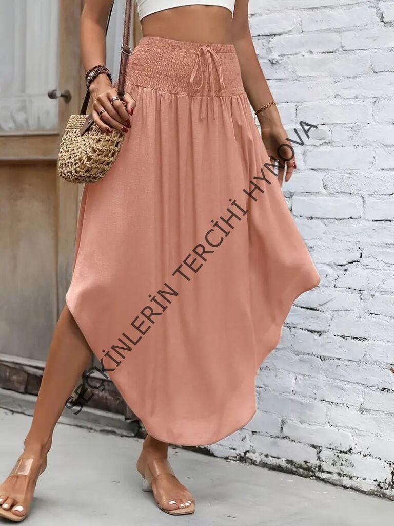 Kadın Yüksek Bel Belden Bağlamalı Asimetrik Kesim Detaylı Sandy Etek