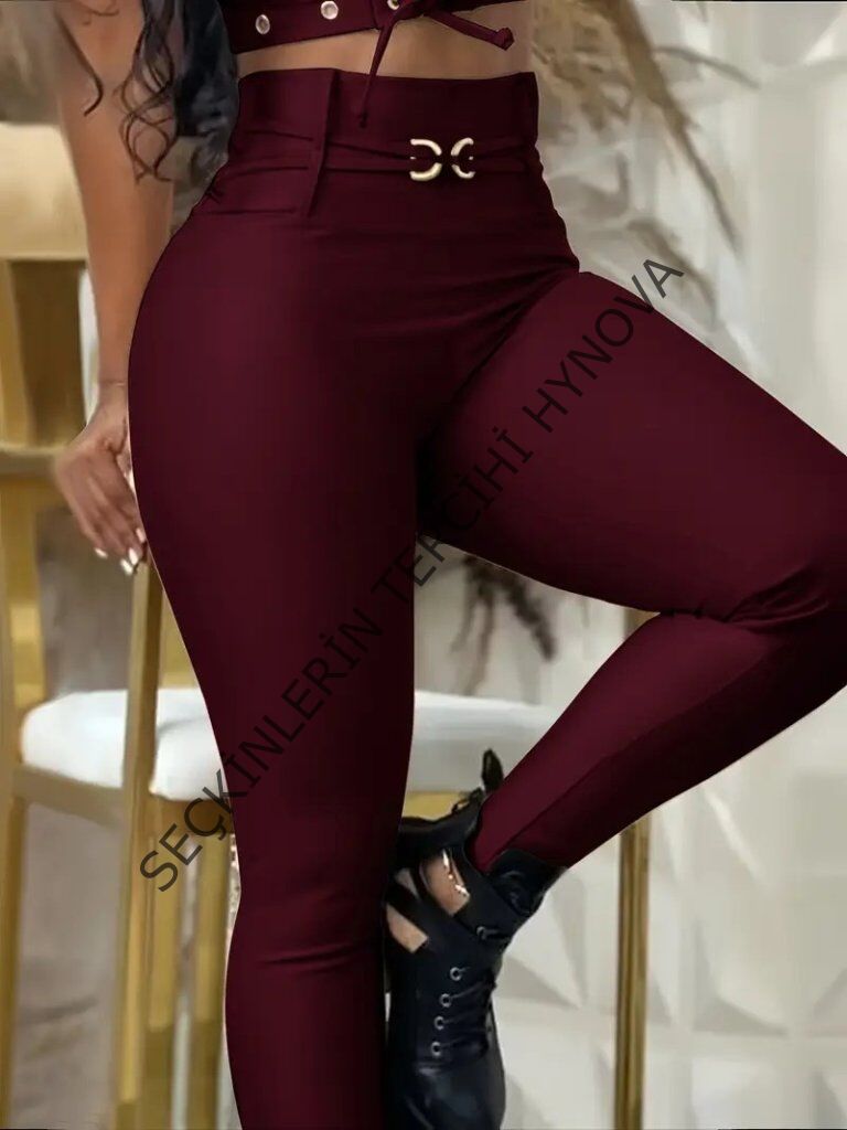 Kadın Yüksek Bel Belden Toka Detaylı Dalgıç Tayt