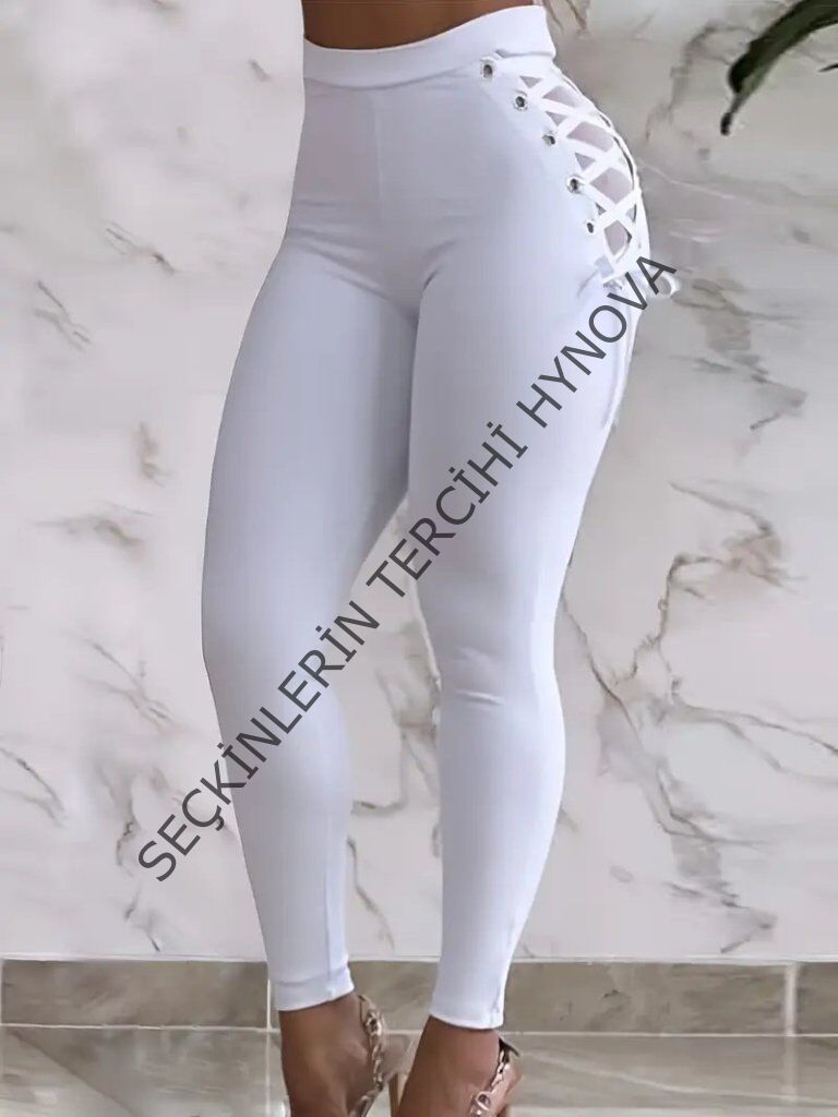 Kadın Yüksek Bel çapraz Bağcıklı Tül Detaylı Dalgıç Tayt