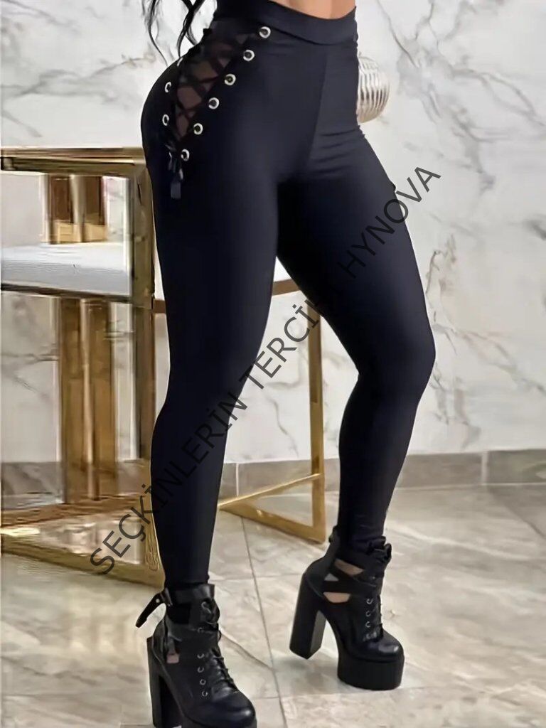 Kadın Yüksek Bel çapraz Bağcıklı Tül Detaylı Dalgıç Tayt