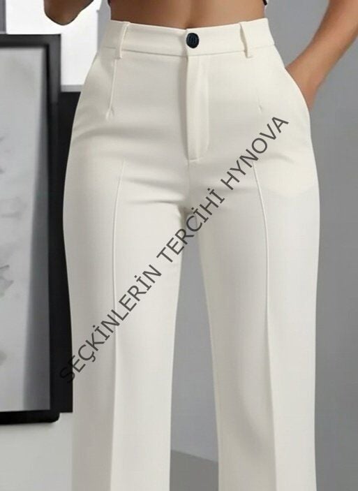 Kadın Yüksek Bel Cepli Ithal Krep Pantolon